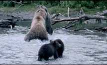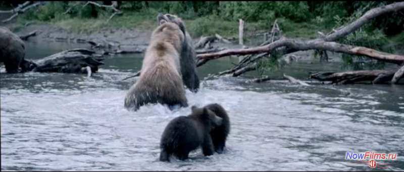 Мир природы он настолько богат и красив, что не хватит слов и эмоций передать все то, что можно увидеть своими глазами и ощутить. Это действительно захватывающие зрелище, а когда начинаешь вникать во все процессы и узнавать как все происходит и как все это взаимосвязано, то начинаешь полностью осознавать, что вокруг человеческой жизни идет самая настоящая жизнь животных, растений и множество других живых организмов. Кинокартина Земля медведей относится к документальным и здесь вы не увидите людей, ведь в главных ролях будут медведи. Большая медведица и ее двое медвежат покажут вам тернистый путь того, что приходится преодолевать животном в диком мире, чтобы стать по истине настоящим диким зверем и прожить очень бурную жизнь. Со стороны людям кажется, что у животных нет ни чувств и ни эмоций, однако мы глубоко ошибаемся и кинофильма Земля медведей покажет вам все это на своем собственном примере. Фильм начнется с того, что главные герои начнут свой жизненный путь рядом с матерью. Мамаша будет их учить самым основным вещам, которые позволят медвежатам выжить в этом жестоком мир, где побеждает только сильнейший, ну и кроме всего этого конечно же подарит свою любовь и ласку. Вы увидите своими глазами, как медвежата будут расти и учиться всему тому, что им действительно пригодится. Они будут познавать первые уроки охоты, а также как это защищать себя самостоятельно, а не прятаться за большой мамой. Необузданная природа, где человеческие законы не подвластны – это и есть тот самый настоящий, дикий мир, где у животных свои законы и они действительно придерживают их. Ну и в самой последней части данного кинофильма вы увидите, как один из медвежат будет строить себе семью. У него появиться та самая любовь с которой и будет держать свой дальнейший путь. Однако и здесь как у людей будут свои сложности, ведь просто так завоевать вторую половину и не такое простое дело как кажется на первый взгляд.