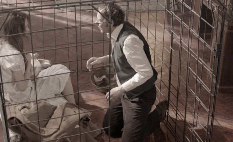 Фёдор Михайлович Достоевский, должно быть, просто переворачивается во гробу, созерцая откуда-то из небытия, что сотворила с его неплохим в принципе фантастическим произведением «Кроткая» (по видению самого Фёдора Михайловича) режиссёр Элла Архангельская, снявшая кинодраму «Клетка».